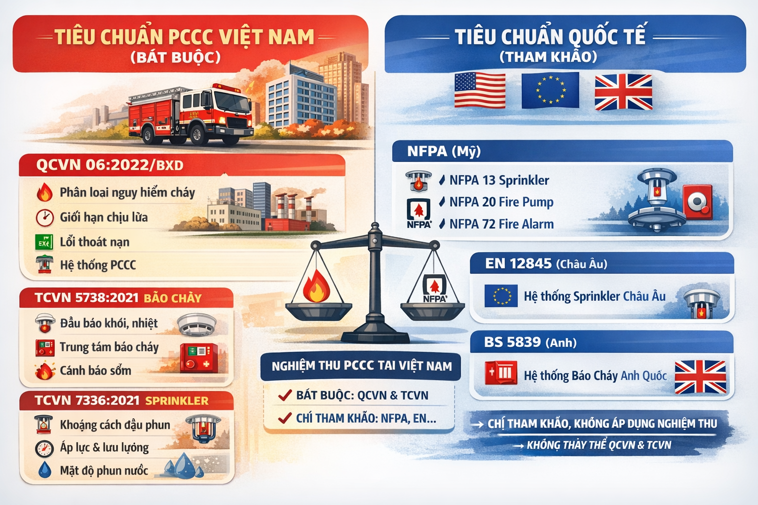 Thiết kế có thể theo NFPA, nhưng nghiệm thu bắt buộc theo QCVN & TCVN